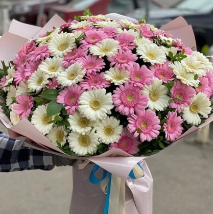 Букет из 101 белой и розовой герберой | Купить в Дзержинске